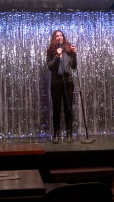 Tämä kilpailija esitti 150-sanaisen näytelmän, joka oli huvittava ja kirvoitti aplodit yleisöltä. Seuraava kilpailija esitti todella oudon runon, ja yleisö tykkäsi. Sitten oli vuorossa lyhyt kertomus, jossa ei ollut mitään järkeä, mutta silti se nauratti. Toiseksi viimeisenä olinkin sitten minä, Team Finlandin ainoa edustaja ja Suomen maailmankuulun komediaskenen epävarma lipunkantaja.
